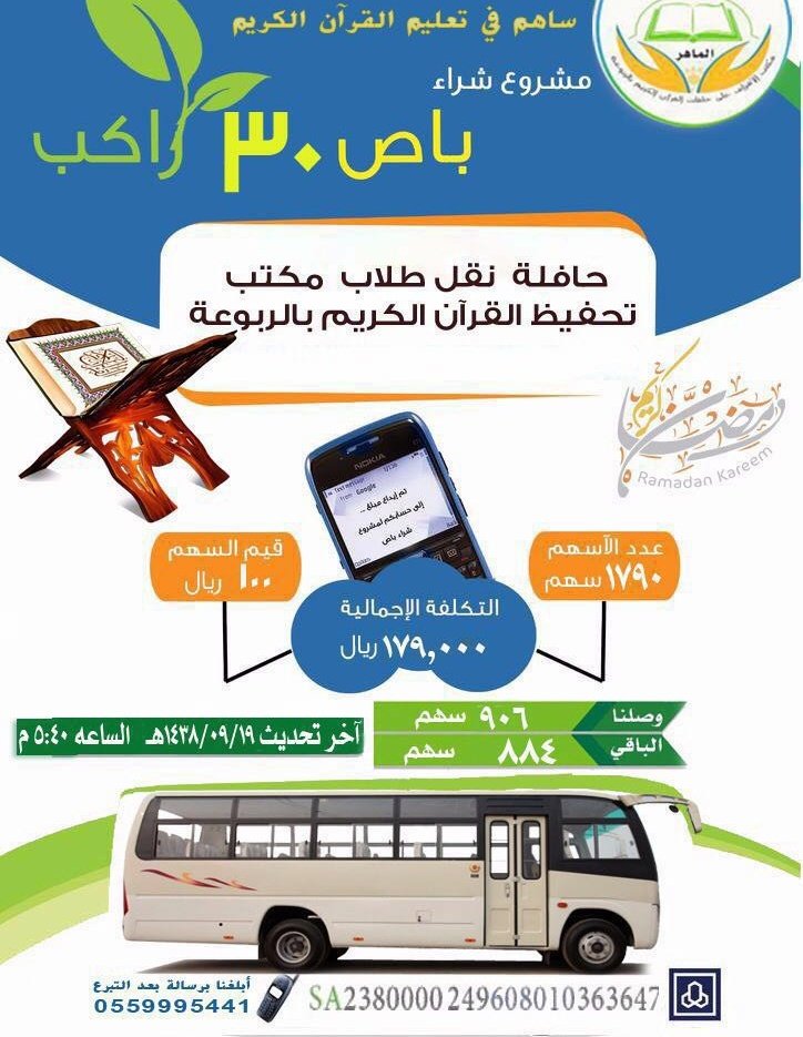 #حافلة نقل طلاب #مكتب_حلقات_الربوعه تنتظر مساهمتك فيها لتكسب #أجر من تنقل