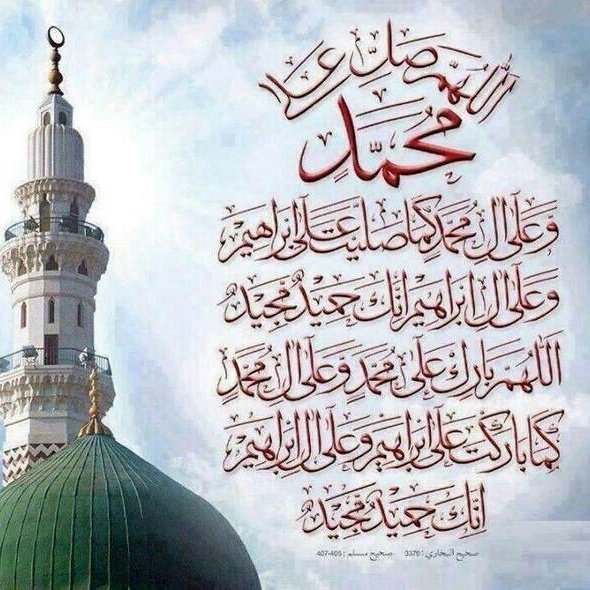 اللَّهُــمَّ صَلِّ وَسَـــلِّمْ وَبَارِك على نَبِيِّنَـــا مُحمَّد وعلى آله وصحبه أچمعين