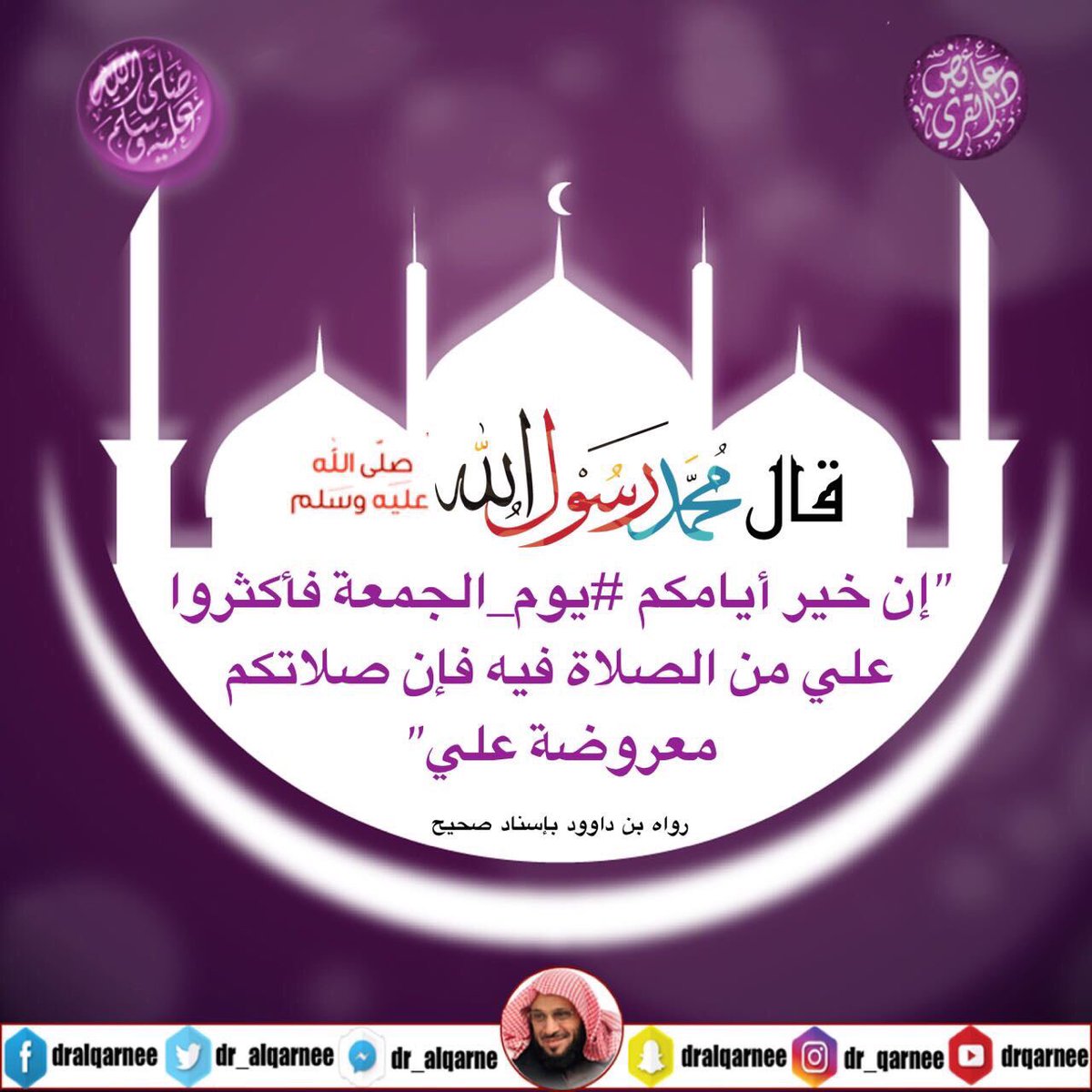 "إن خير أيامكم #يوم_الجمعة فأكثروا علي من الصلاة فيه فإن صلاتكم معروضة علي"