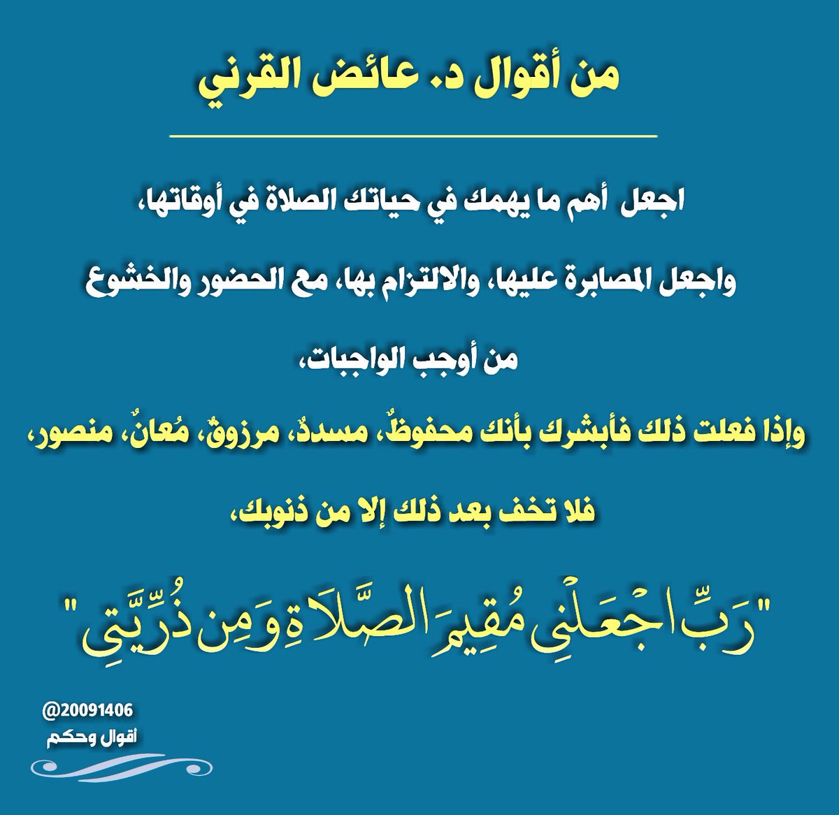 اللهم اجعلني مقيم الصلاة ومن ذريتي اللهم احفظنا وسددنا وارزقنا واعنا على ذكرك وشكرك وحسن عبادتك وانصرنا واغفر لنا كل الذنوب واعف عنا