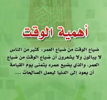 من أهم المقومات الإدارية الناجحة، تقدير الشخص لعنصر الزمن، وقد أولى الإسلام هذا العنصر عناية شديدة، وحثّ على استغلاله بأفضل صورة، وقد أقسم القرآن بالزمن، كما يشير الى ذلك أحد معاني كلمة «العصر»، ﴿وَالْعَصْرِ * إِنَّ الْإِنْسَانَ لَفِي خُسْرٍ﴾ ،pic.twitter.com/l4kQsAB7M6