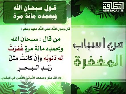"من قال سبحان الله وبحمده ، في يوم مائة مرة ، حطت خطاياه وإن كانت مثل زبد البحر"
