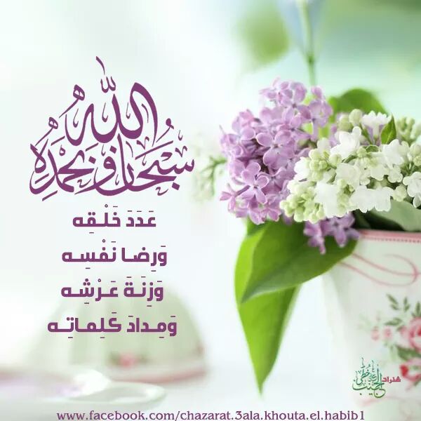 "سبحان الله وبحمده عدد خلقه، ورضا نفسه، وزنة عرشه، ومداد كلماته" 3مرات اللهم من قالها ونشرها فاغفر ذنبه، واشرح صدره، ويسّر أمره، واسقه من حوض نبيك ﷺ.
