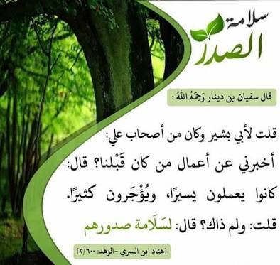 إن نقاء القلوب وصفاء النفوس، وسلامة الصدر - مطالب شرعية يجب أن يتحلى بها كل مسلم: قال تعالى وهو يمدح المهاجرين والأنصار: ﴿ وَالَّذِينَ جَاؤُوا مِنْ بَعْدِهِمْ يَقُولُونَ رَبَّنَا اغْفِرْ لَنَا وَلِإِخْوَانِنَا الَّذِينَ سَبَقُونَا بِالْإِيمَانِ وَلَا تَجْعَلْ فِي قُلُوبِنَا غِلاpic.twitter.com/1GAQXX2A7B