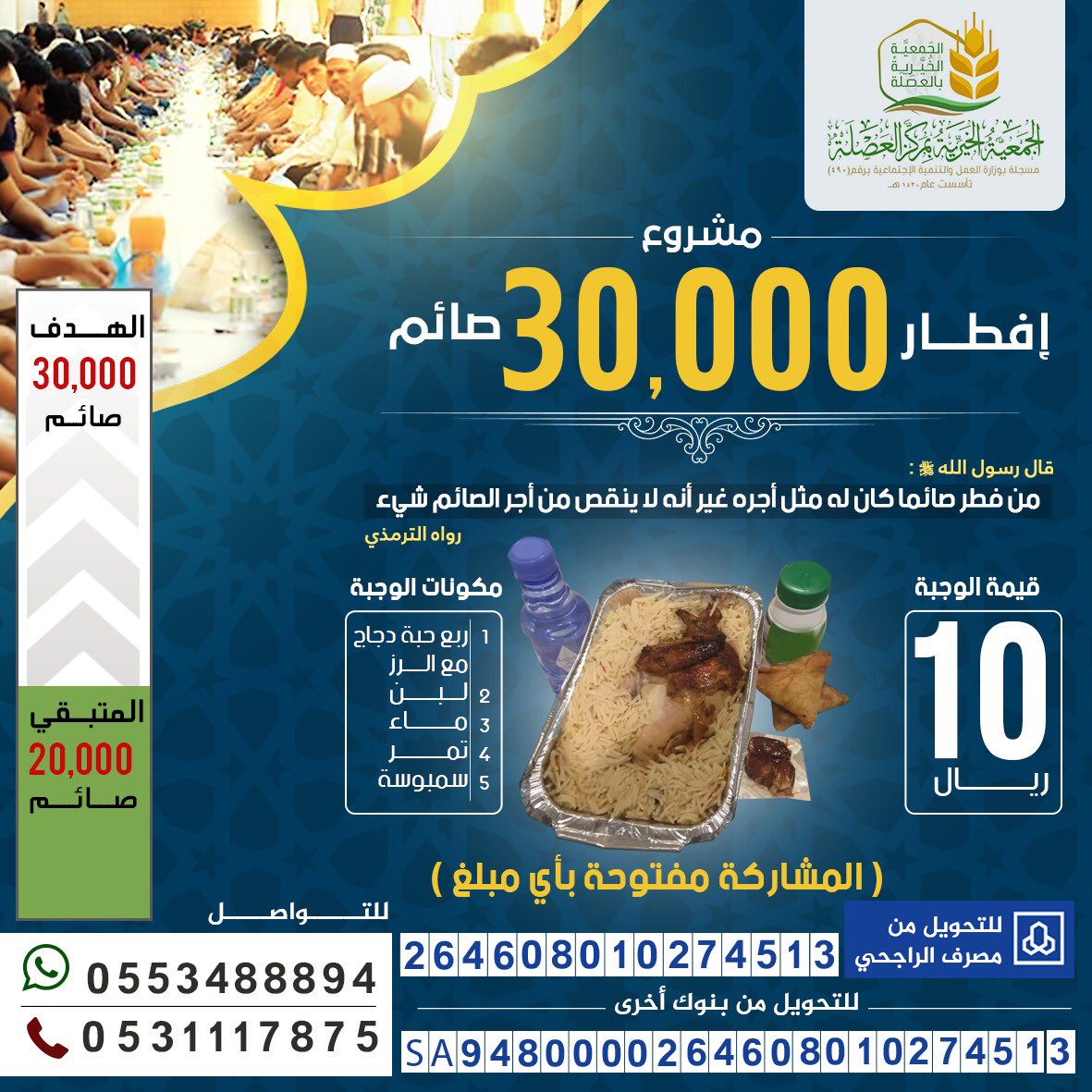 مشروع افطار الصائم ان يطعمه من الجنة ويسقيه من انهارها