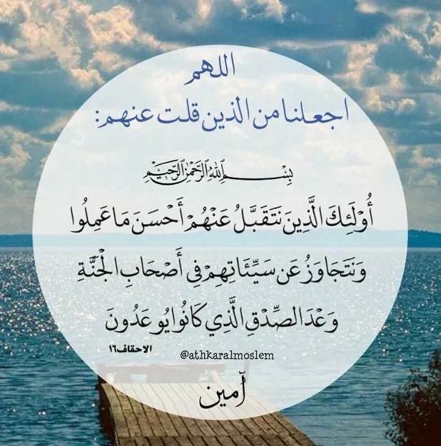 اللهم اجعلنا ممن قلت عنهم: "أولئك الذين نَتَقَبَّلُ عنهم أحسن ما عملوا ونتجاوز عن سيئاتهم في أصحاب الجنة وعْدَ الصدق الذي كانوا يُوعَدُونَ".