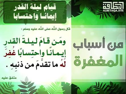 قال ﷺ: من صام رمضان إيماناً واحتساباً غُفر له ما تقدّم من ذنبه، ومن قام رمضان إيماناً واحتساباً غُفر له ما تقدّم من ذنبه، ومن قام ليلة القدر غُفر له ما تقدّم من ذنبه.