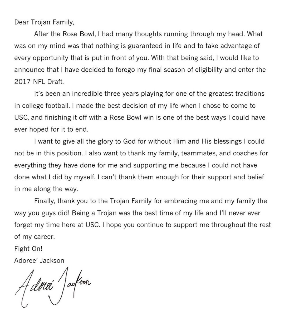 USC CB/WR/RET Adoree' Jackson declares for the NFL Drafthttps://twitter.com/adoreeknows/status/821082388620972032 …