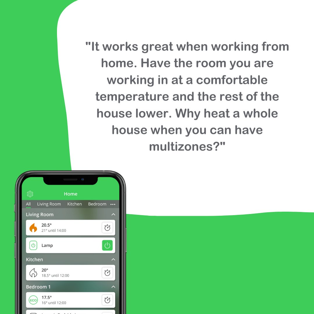 Multi-zone heating is the key to saving energy, especially when working from home. Set the temperature of the desired room at a comfortable level without overheating the rest of the house through the Wiser Home app