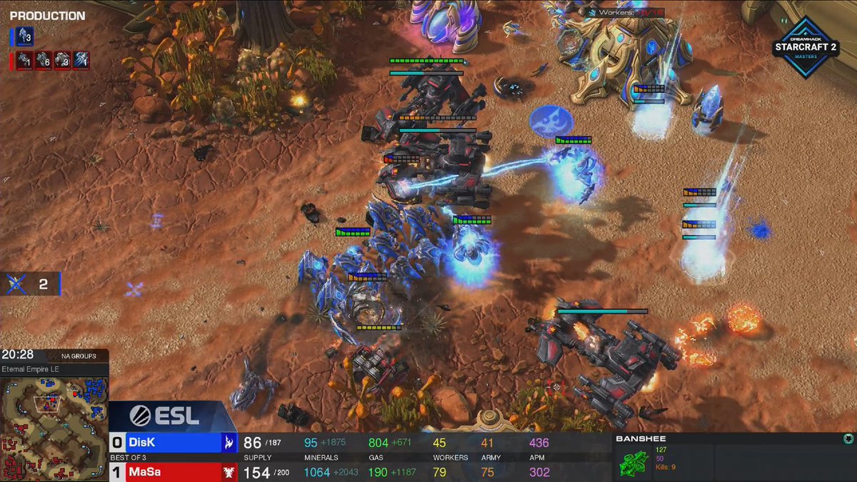 Despite INCREDIBLE Disruptor shots from DisK, @MaSa_sc2 and his battle mech takes the series home with a 2-0 score.
