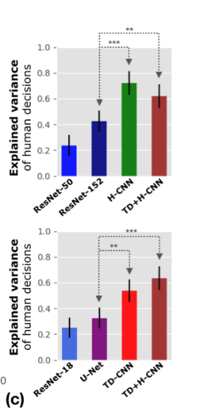 Our feedback models are also significantly better than leading feedforward DNNs at capturing human decisions on these tasks. The recurrent visual strategies learned by the models are a better fit for human decision making than visual strategies learned by typical DNNs. 16/17pic.twitter.com/J3gYaBCWro