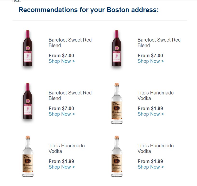 Beer, wine and liquor delivered in under 60 minutes. Also ice and mixers and stuff but mostly those first three.