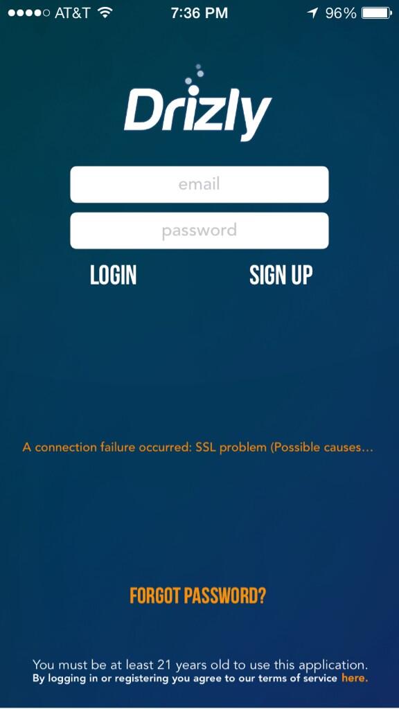 @DrizlyInc I keep getting connection errors when trying to sign in. Is the app down?pic.twitter.com/zAHoYaY54g