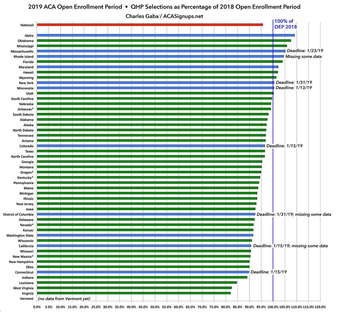 This is really amazing: NE, KS and IA--you're all at 90% of last year (2018) openn enrollment numbers! And in fact, MOST states are at 90% or more of 2018 OEP numbers! This is incredible & I want to thank all the great people who helped spread the word & get folks enrolled!https://twitter.com/charles_gaba/status/1081296073077997568 …