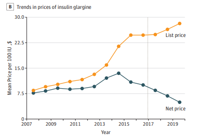 @JohnArnoldFndtn funded propaganda from@KFF. Data are *not* "Part D spending." Insulin is highly rebated. List prices going up, but net prices going down, e.g., Lantus (below), Humalog (https://drugch.nl/3aLDXH7 ) P.S. "Before rebates" disclaimer ≠ accuracy#forshame https://twitter.com/KFF/status/1222221317505724422 …pic.twitter.com/J0F2KTSR9S