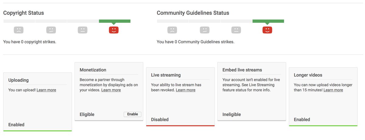 Yesterday I turned on YouTube’s livestream functionality to see what it requires of me, and today I find that my ability to livestream has been disabled. No reasons given. Why? Anyone have experience with this? @TeamYouTube @YouTubeGaming @YTHH2018