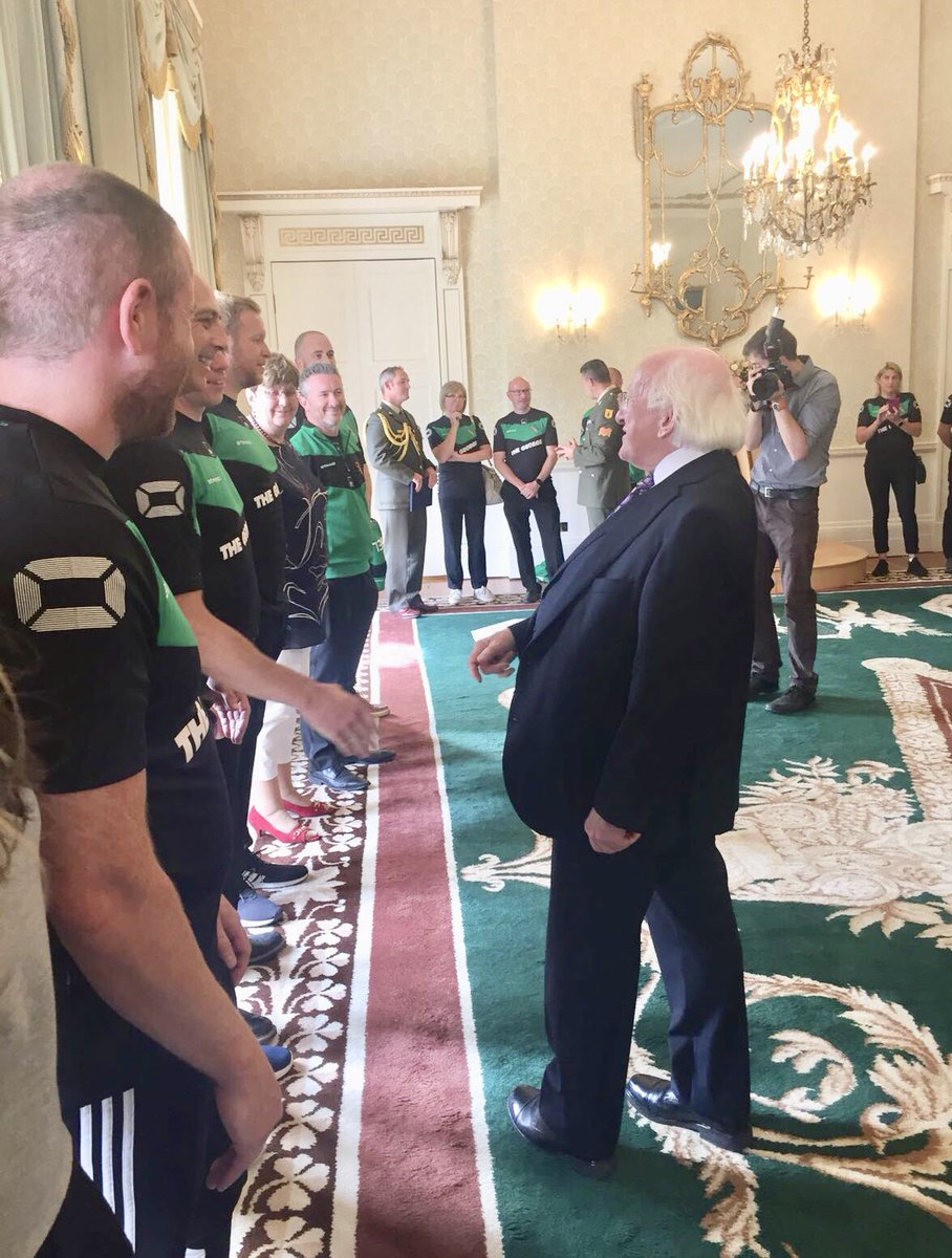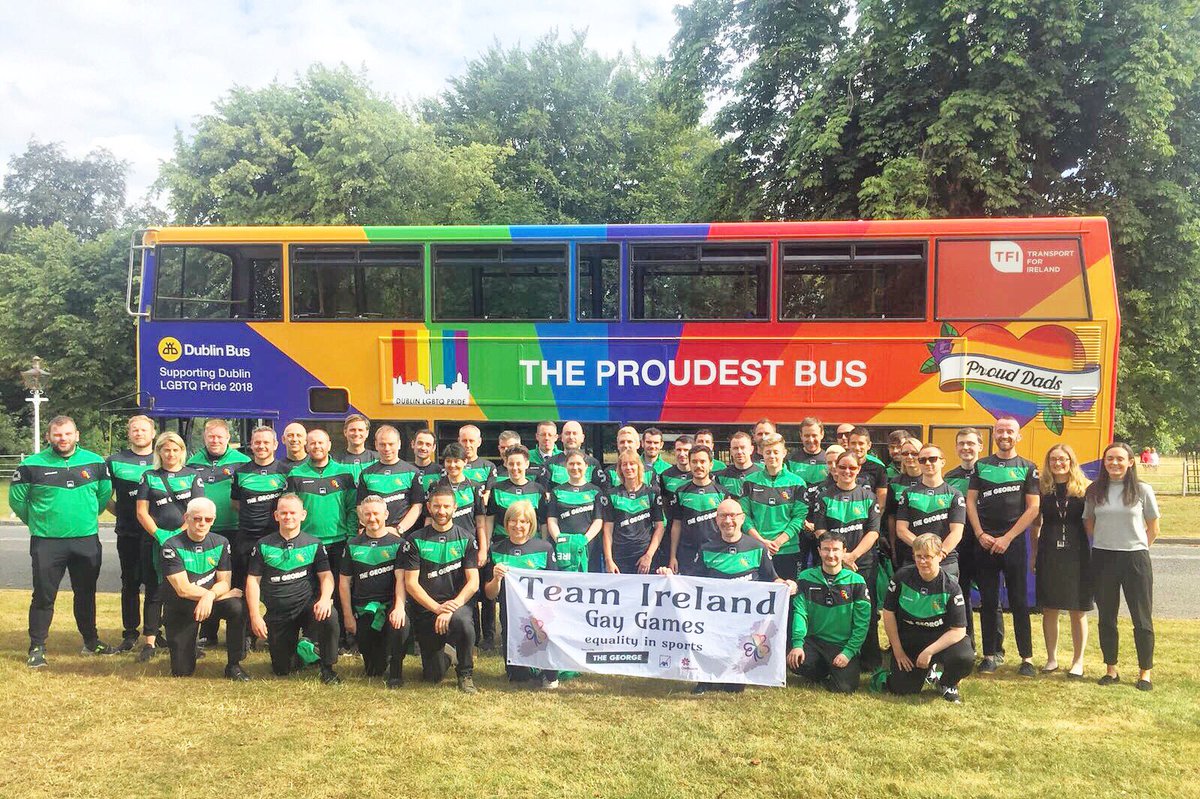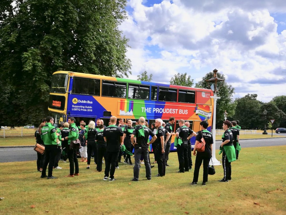 #TeamIreland from#GayGames meeting President Higgins. Check out the proudest bus in#Dublin courtesy of@dublinbusnews