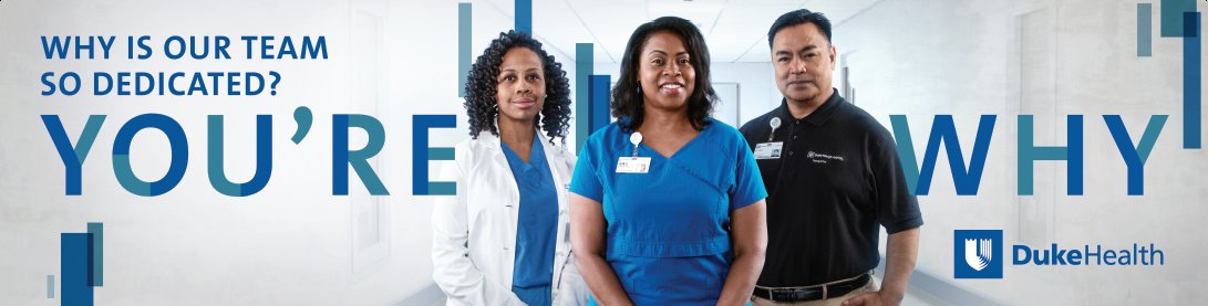 Across North Carolina, Duke Health is focused on caring for our patients and their loved ones, and improving the health of our communities. You’re why we strive for better every day. Featuring some of our colleagues