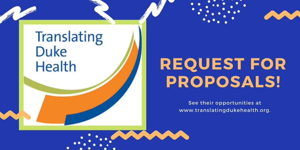 Translating Duke Health is calling for proposals! "Pilot Project Grants in Innovative Approaches Combining Computational Techniques and Immunology Research" due February 17, 2020 https://bit.ly/2uxPklm "CHDI Faculty Fellows Program" due April 15, 2020 https://bit.ly/2Ro2jyH pic.twitter.com/6AivCjFBXG