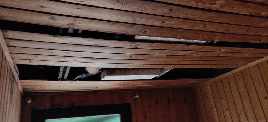Opened up a different area of the ceiling, there's stuff to be replaced as well, but all'n'all it's looking like less work than I expected it to be. We will get rid of the ceiling and instead open up the wooden construct of the roof. Will look much bigger and much nicer this way.pic.twitter.com/OjxwCwafQx