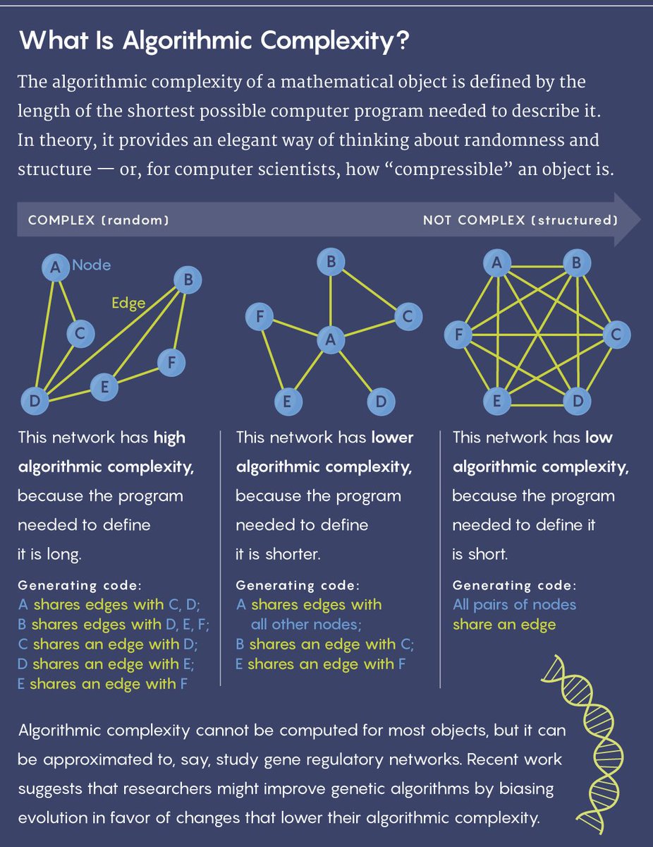 ICYMI: The mathematical concept of algorithmic complexity seemed inapplicable in the real world. But scientists are now using it to analyze networks and push their evolution toward optimal solutions. https://buff.ly/2E7WHmW pic.twitter.com/xaHtNxRyCX