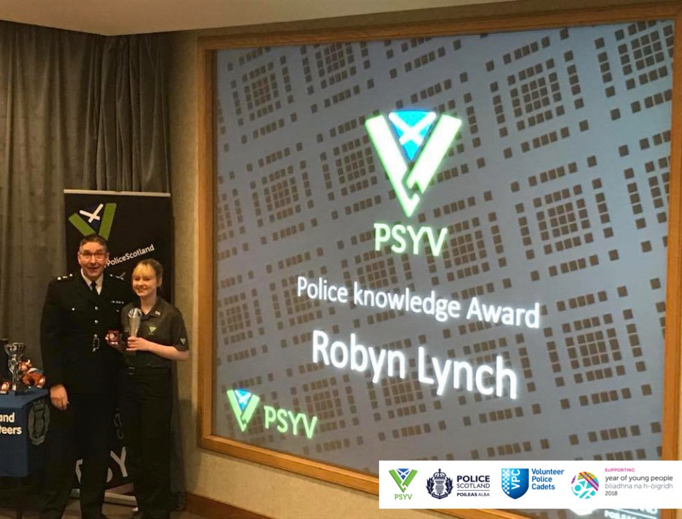 #PSYV Dunfermline's annual awards ceremony, Chief Superintendent Colin Gall presented awards to youth#volunteers. Morgan - Drill Award Natalie - Youth Volunteer of the Year Team of the Year Robbie - Outstanding Conttribution to PSYV@FifePolice@NationalVPC#YOYP2018pic.twitter.com/ZtJtNHGRv5