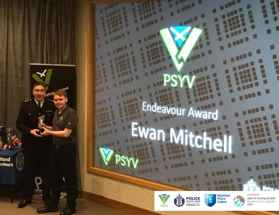 #PSYV Dunfermline's annual awards ceremony, Chief Superintendent Colin Gall presented awards to youth volunteers. Ewan - Endeavour Award Robyn - Police Knowledge Caitlin - Commitment Award Kyle - Leadership Award@FifePolice@policescotland@NationalVPC#YOYP2018pic.twitter.com/AqVlE3XvXv
