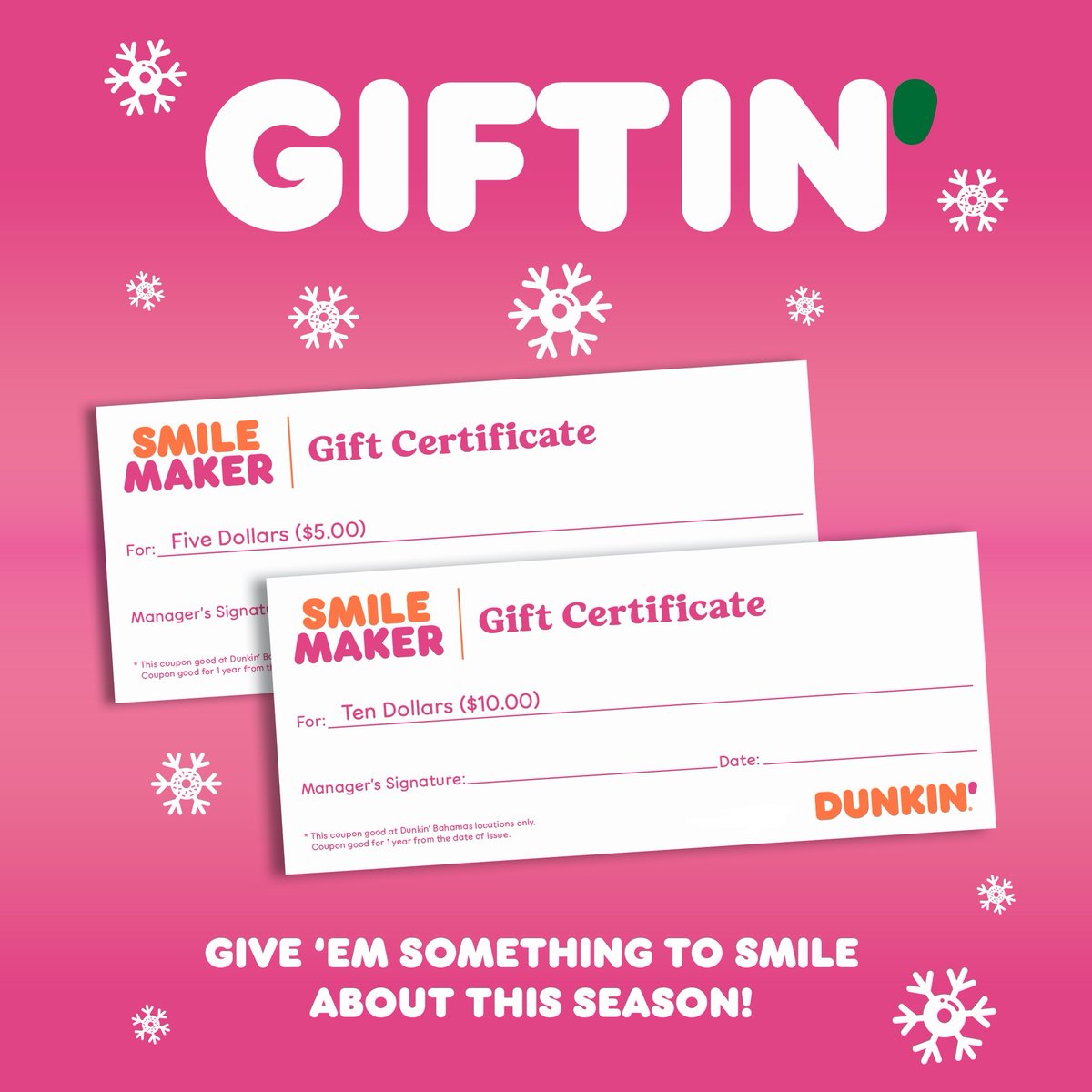 The best gifts are the sweetest like Dunkin' Gift Certificates! Get to giftin' this holiday season and put a smile on your loved one's face.