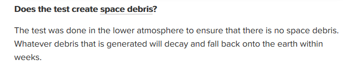 According to @timesofindia answers to question about debris concern: "because the test was in lower atmosphere to ensure that there is no space debris" which sounds strange...to put it mildly...pic.twitter.com/eqjUMAyJqj