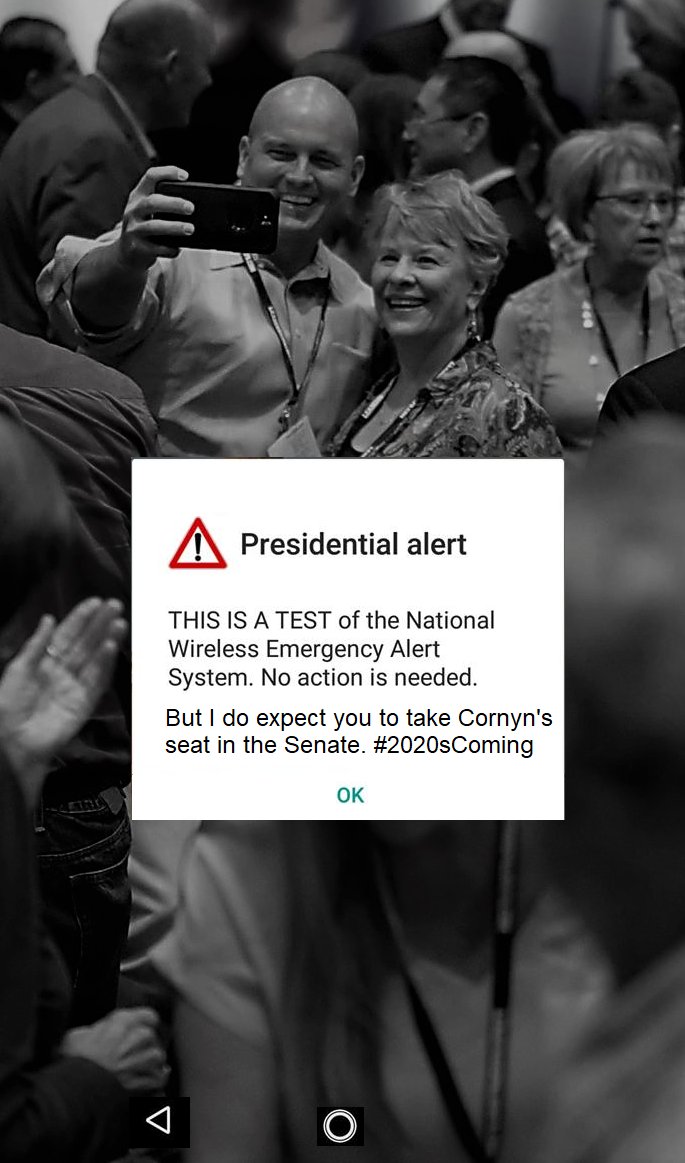 Erbody get their POTUS text today? You know I got mine. #2020sComing #BuByeCornyn #LessDCMoreTXpic.twitter.com/ehj4MLEDKc