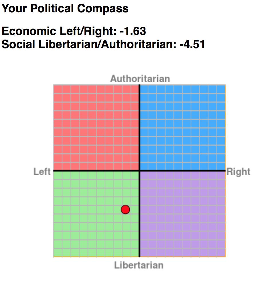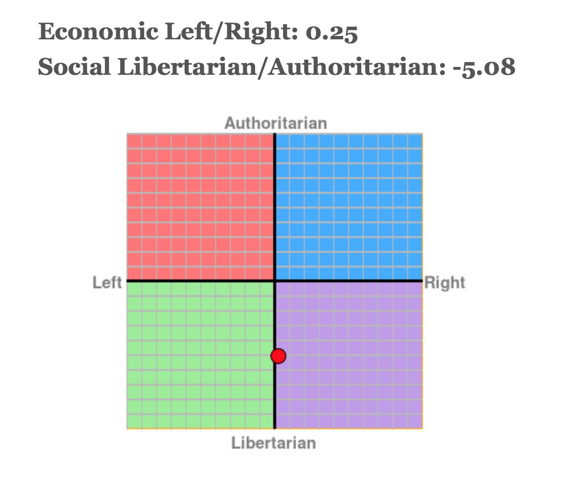 Interesting. just took the political compass test again and compared it with my results from 1.5 years earlier, I have moved slightly more to the center in recent years. I can mostly attribute this to