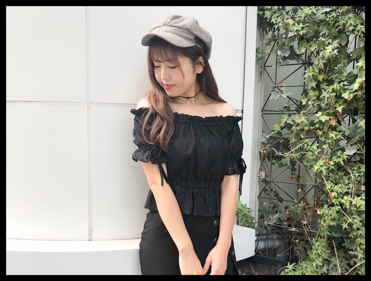 #BACKレースアップパンツ ¥11,000+tax#チュールホールオープンショルダーブラウス ¥9,000+tax#レースホールリブトップ ¥6,400+tax etc...