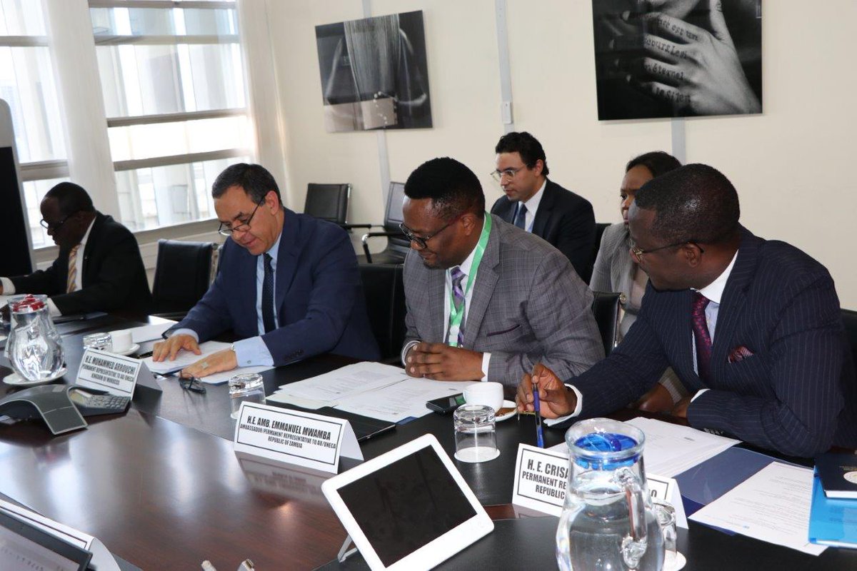 #Seychelles,@ECA_OFFICIAL rencontre le Bureau pr discuter des préparatifs de la prochaine 53e Conf. des min. prévue du 18 au 24 mars à#AddisAbaba#Ethiopia. Merci pr votre appui#Ideas2Actionpic.twitter.com/eZywOSHZfY