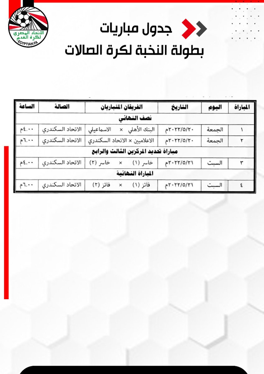 | إنطلاق بطولة النخبة لكرة الصالات اليوم بالإسكندرية ….