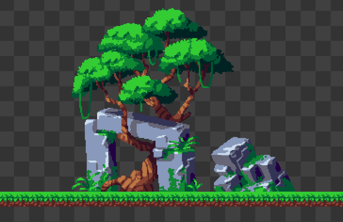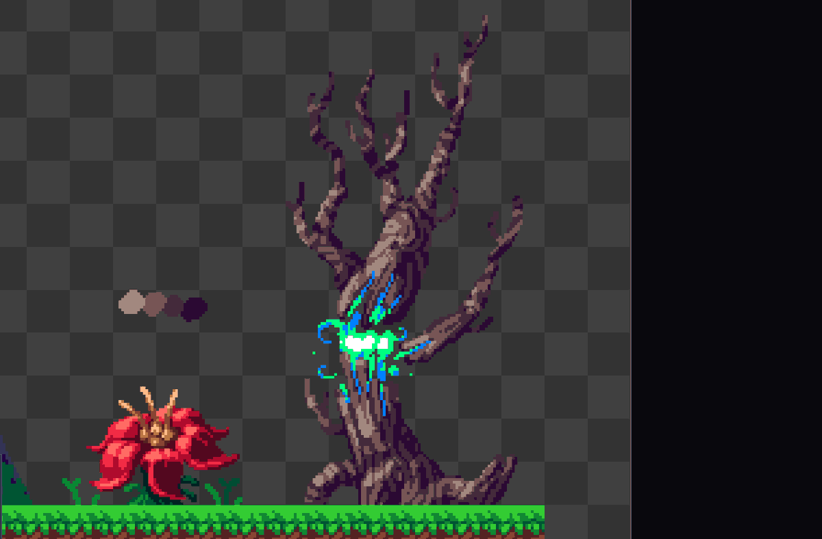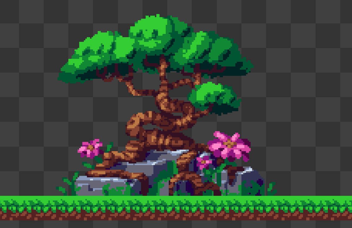 Only 8 colours for the dirt, wood, leaves, and grass. I now have mad respect for people who do top-down often - it's hard to get the perspective right with thingspic.twitter.com/ep8xSsyBRE