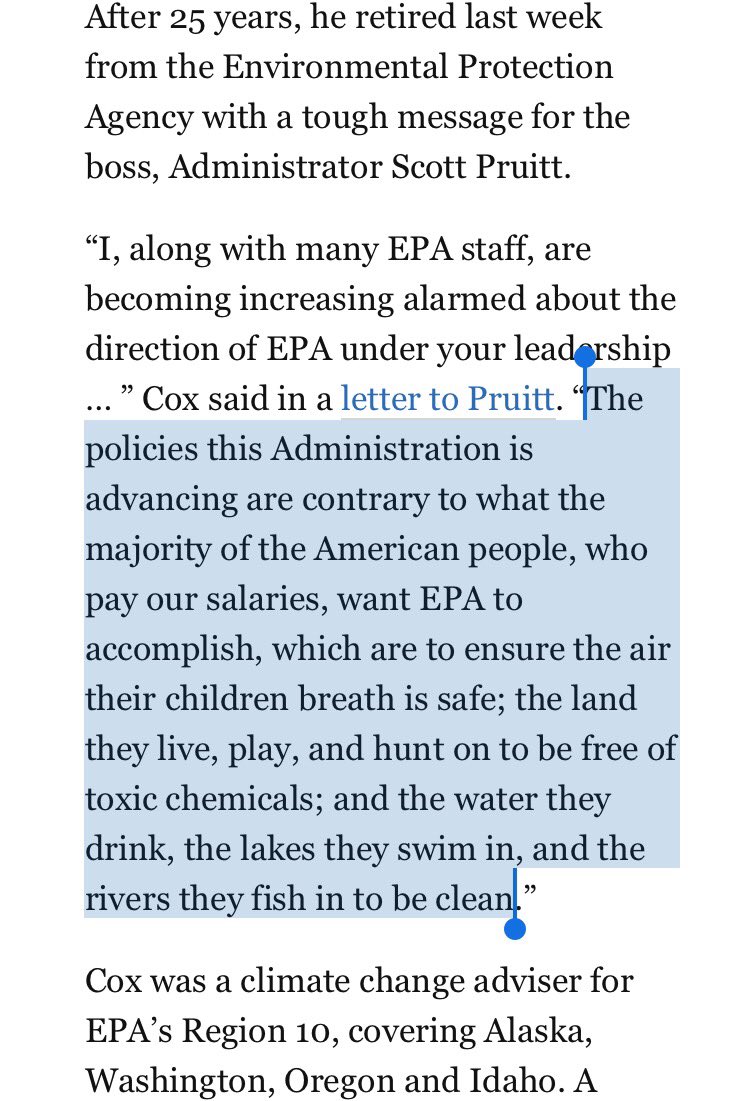 Problem is Trump is cutting funding by 29-30%. Pruitt is still clueless regarding the primary function of PROTECTING THE ENVIRONMENT!