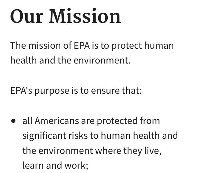 @EPA is pretty clear. It is all about protecting people and the environment they live in. Don't refocus.pic.twitter.com/m4tGfmjRGM