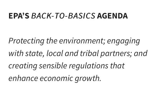 @EvanStarr. Our forward progress is being held back by @EPAScottPruitt. His#EPABack2Basics agenda doesn't jibe with@EPA's mission.pic.twitter.com/VTlnlkNYqJ