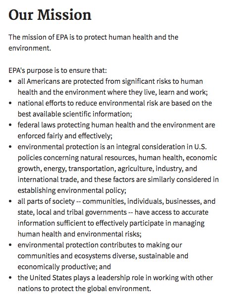 You can read the EPA mission in full. Economic productivity is considered, but not at the expense of protections. https://www.epa.gov/aboutepa/our-mission-and-what-we-do …pic.twitter.com/DEyWP82SAc