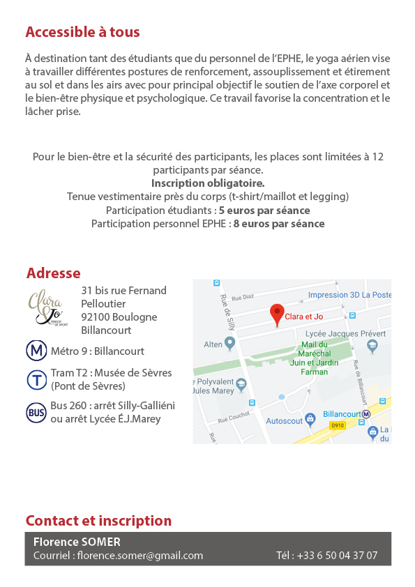 #Bonplan] Etudiant.e.s, personnels de l'#EPHE_PSL, participez à la dernière séance du#yogaaérien qui se tiendra le 4 février. Les étudiant.e.s de@psl_univ sont les bienvenu.e.s ! Pour en savoir plus, consultez les informations ici