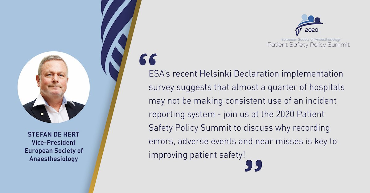 Building on the Helsinki Declaration on Patient Safety In Anaesthesiology - Join us at the 2020 Patient Safety Policy Summit Find out more: https://www.esa2020.org/patient-safety-1 …