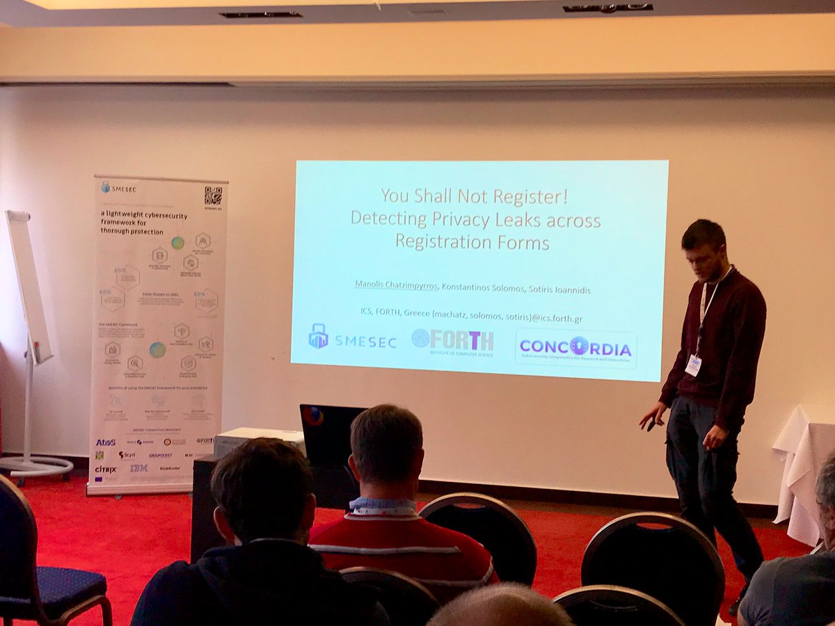 Manolis Chatzimpyrros presenting “You Shall Not Register! Detecting Privacy Leaks across Registration Forms” in