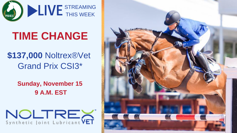 The start time for Sunday morning's $137,000 NoltrexVet Grand Prix CSI3* has been moved to 8 a.m. to 9 a.m. The class will be streamed live at http://PBIEC.com under the "Video Streaming" tab - tune in!pic.twitter.com/czRluJ0uU4