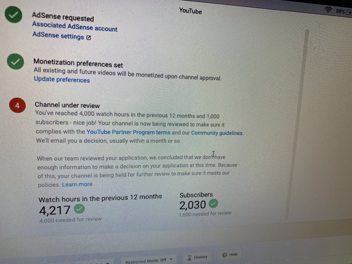 @TeamYouTube @YouTube it’s been a year and nine months know either rejected me so I can reply for monotization or approve my monotizationpic.twitter.com/TtvtAyViLe