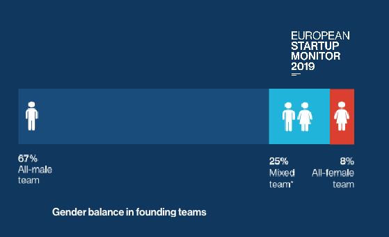 "The overwhelming majority of startups were founded by all-male teams, with just 8% of them founded by all-female teams. The remaining 25% was founded by a team including at least one man and one woman" Do you want to know more? Download the report at http://www.europeanstartupmonitor2019.eu/ pic.twitter.com/HCgt2fSbt4