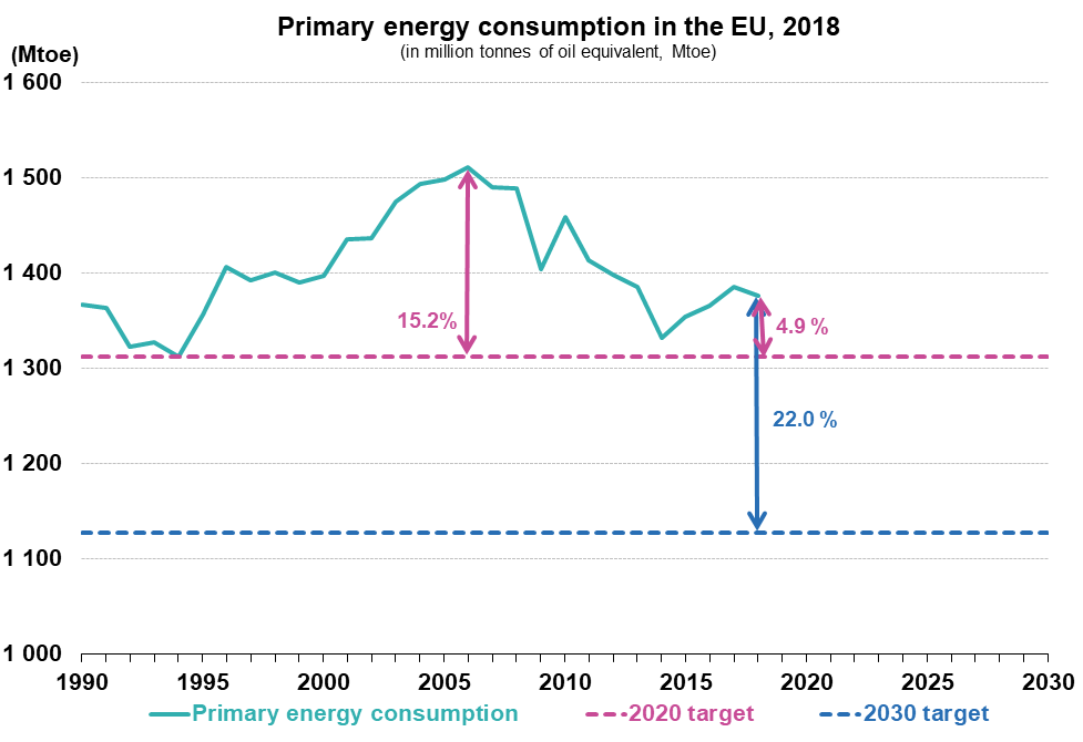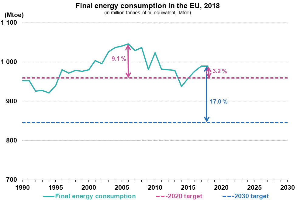 Primary and final energy consumption still 5% and 3% away from 2020 targets