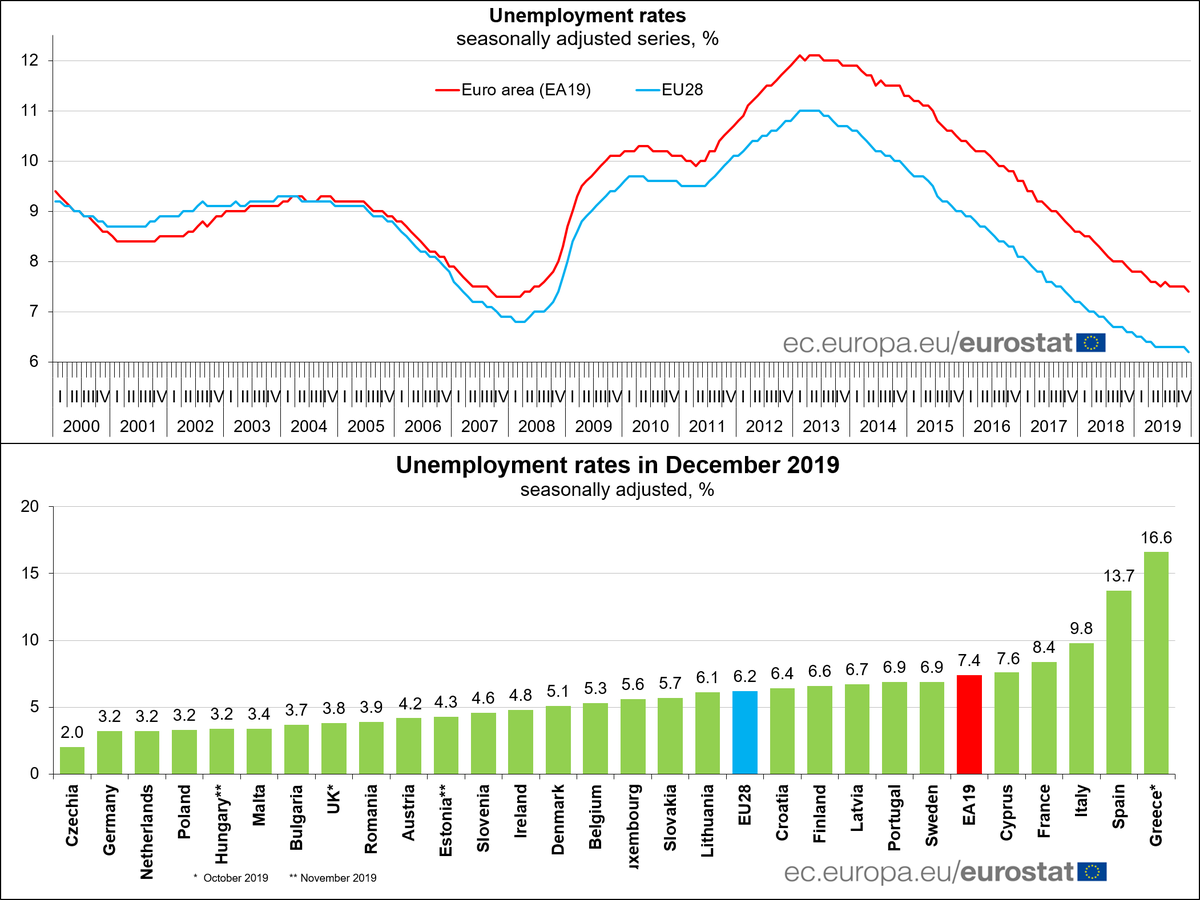 #unemployment at 7.4% in December 2019; lowest rate since May 2008. EU at 6.2% - lowest since the start of the series https://ec.europa.eu/eurostat/en/web/products-press-releases/-/3-30012020-AP …pic.twitter.com/82Gnm65OH9