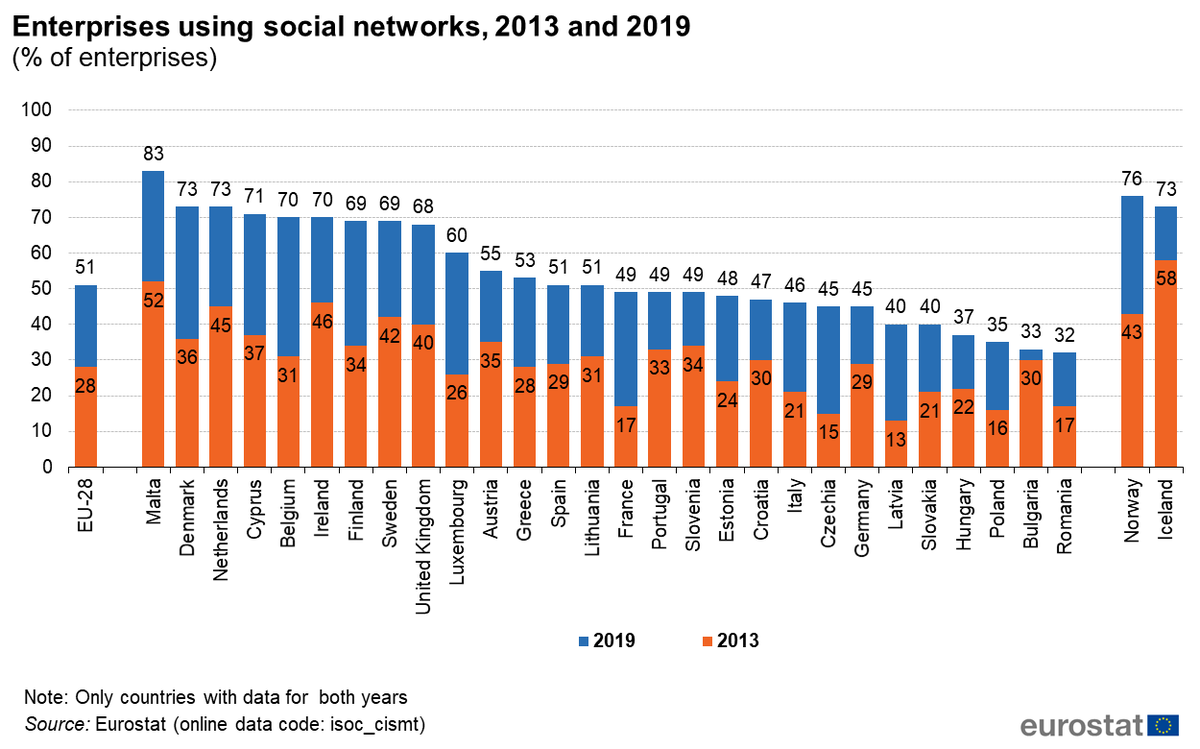 #StatisticsExplained article: https://ec.europa.eu/eurostat/statistics-explained/index.php?title=Social_media_-_statistics_on_the_use_by_enterprises …pic.twitter.com/n8p6su2sTr