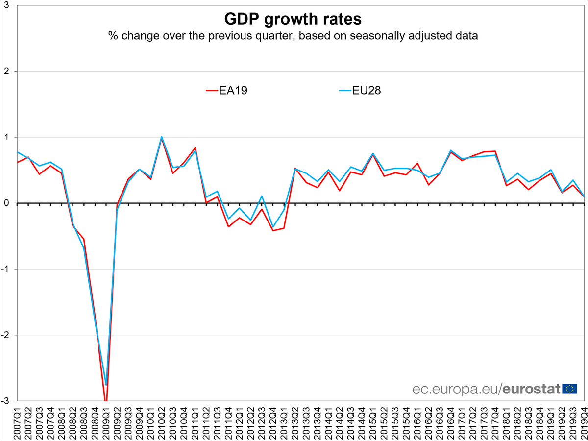 #GDP +0.1% in Q4 2019, +1.0% compared with Q4 2018: preliminary flash estimate from#Eurostat https://ec.europa.eu/eurostat/en/web/products-press-releases/-/2-31012020-BP …pic.twitter.com/5FcqrG37Ir
