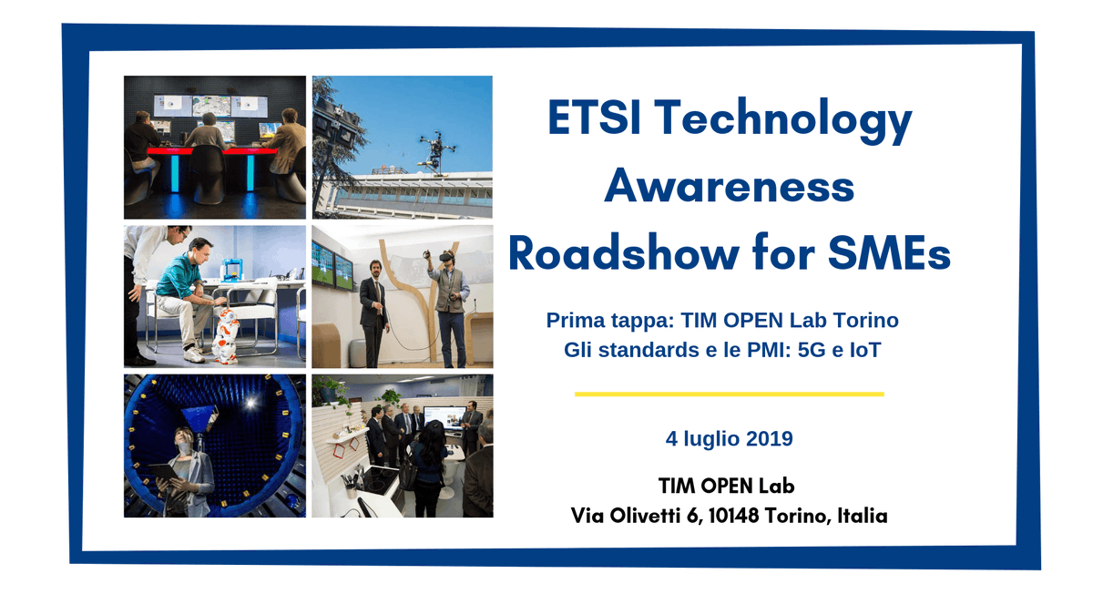 @ITdigitalSME to the first@ETSI_STANDARDS Technology Awareness Roadshow for SMEs on July 4th in Torino. Hosted by@TIM_Official Open Labs, companies will attend demonstrations on 5G, IoT, New Radio and Narroband.